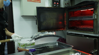 一切準備就緒,接下來就是重頭戲了,烤魚也有著標準的時間規(guī)定,320℃的烤箱,烤制6分鐘。